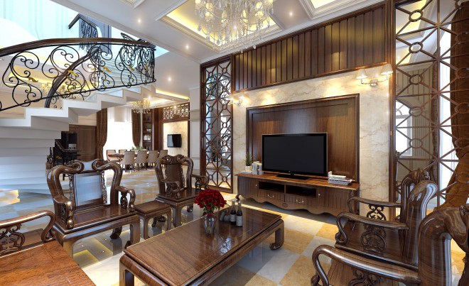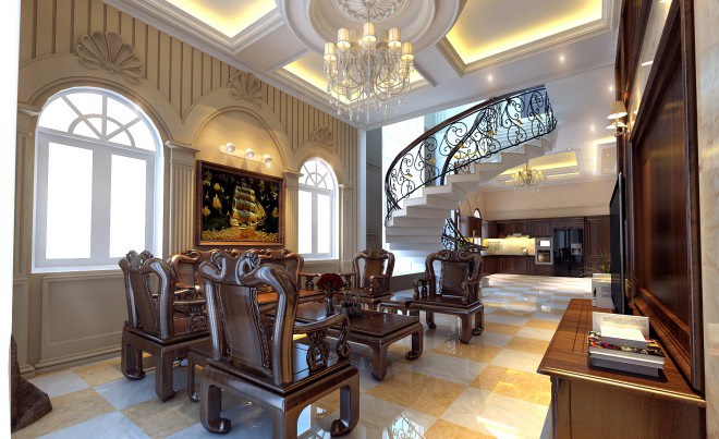 Phòng khách được thiết kế hiện đại mang đậm nét phương Tây.